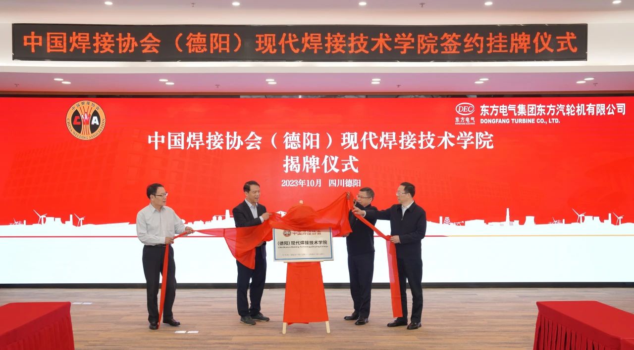 31日,中国焊接协会(德阳)现代焊接技术学院签约及挂牌仪式在壹号娱乐-com - NG大舞台,有梦你就来集团壹号娱乐-com - NG大舞台,有梦你就来汽轮机有限公司举行,中国焊接协会副会长兼秘书长李连胜、副秘书长吴九澎,壹号娱乐-com - NG大舞台,有梦你就来集团总经理助理、组织人事部部长、党校校长曾小平,壹号娱乐-com - NG大舞台,有梦你就来汽轮机党委书记、董事长刘辉共同为“中国焊接协会(德阳)现代焊接技术学院”揭牌。中国焊接协会与壹号娱乐-com - NG大舞台,有梦你就来汽轮机签署了合作协议。
