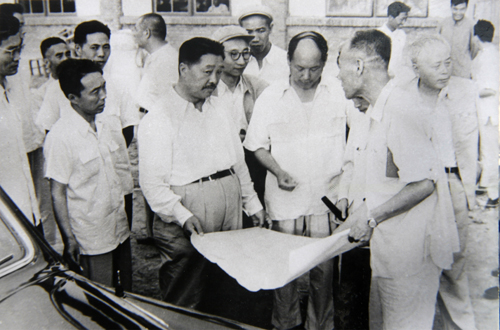 1959年6月时任国务院副总理贺龙同志视察东电(原德阳水力发电设备厂)生产建设情况